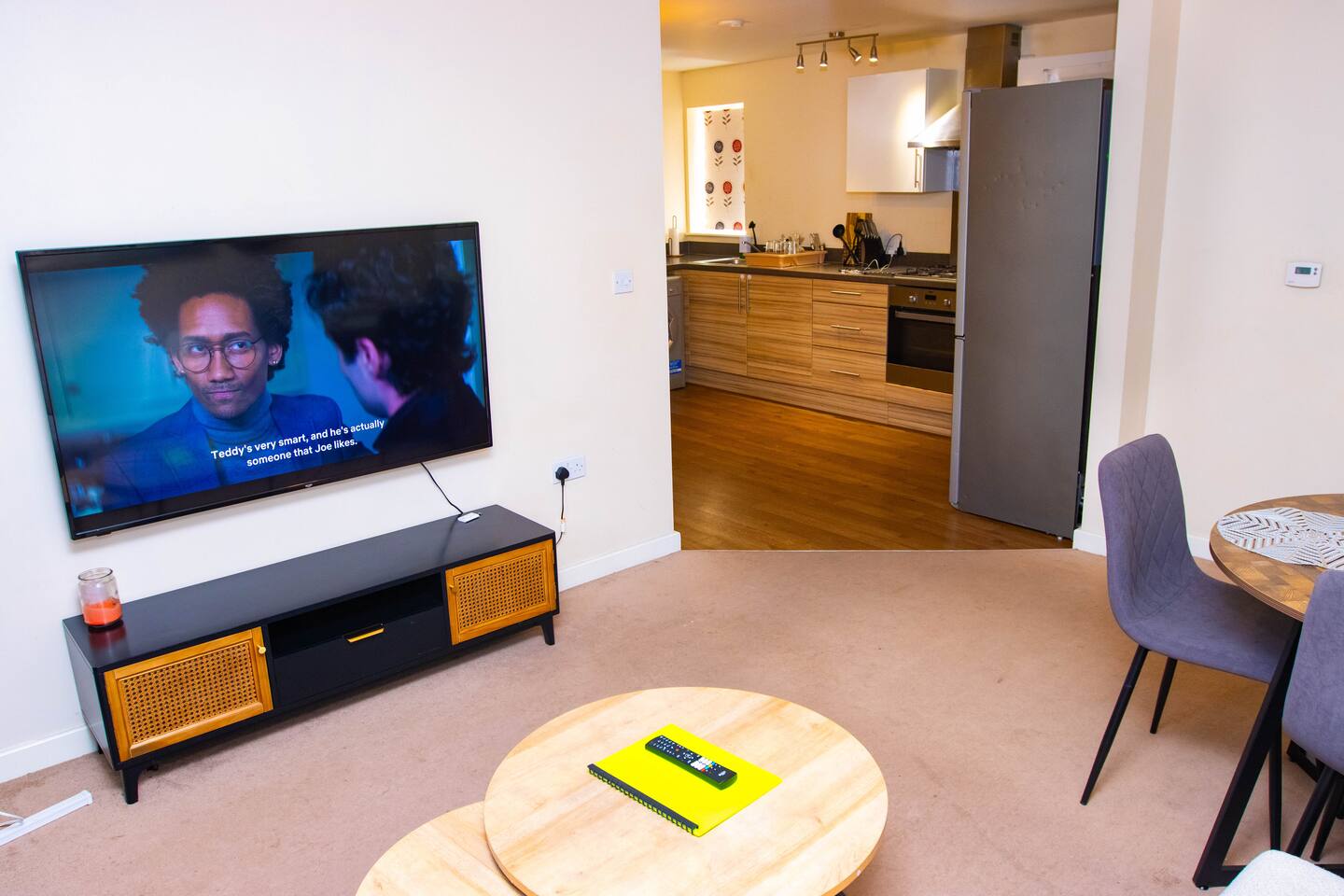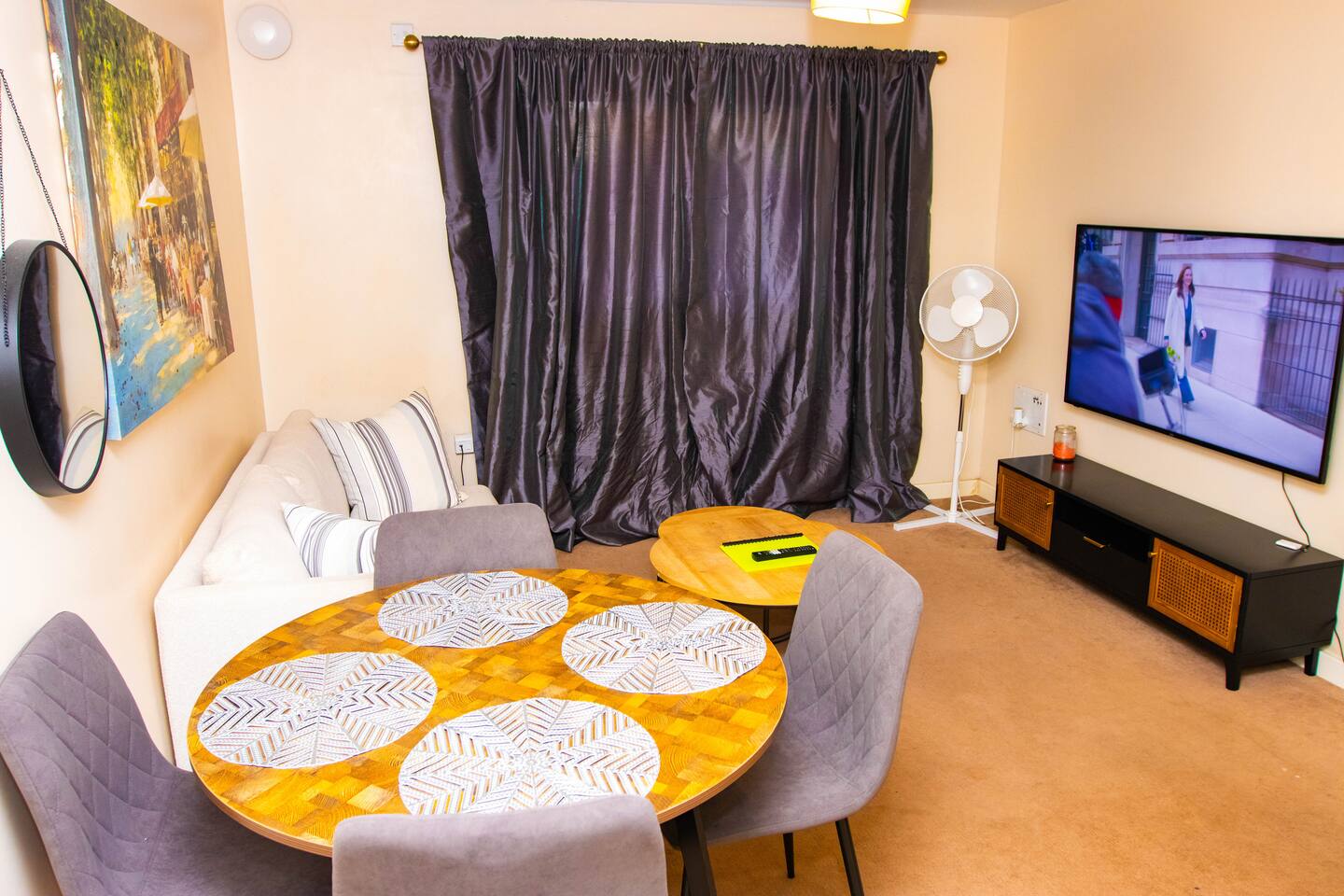 Stylish 2-bedroom flat in the heart of Kettering. Ideal for families, professionals, or small groups. Features a fully equipped kitchen, comfy living area with Smart TV, fast Wi-Fi, and free parking. Located just minutes from shops, restaurants, and Kettering Station. Enjoy restful nights in cozy beds with fresh linens. A perfect short or long-stay base in Northamptonshire! The property is non-smoking a apartment.