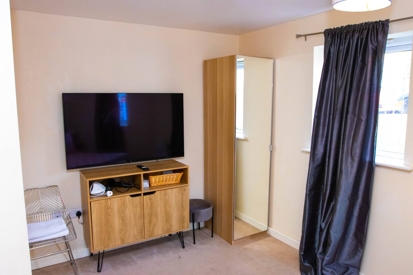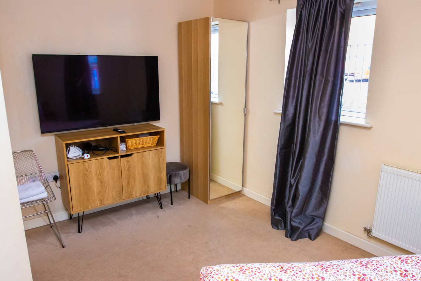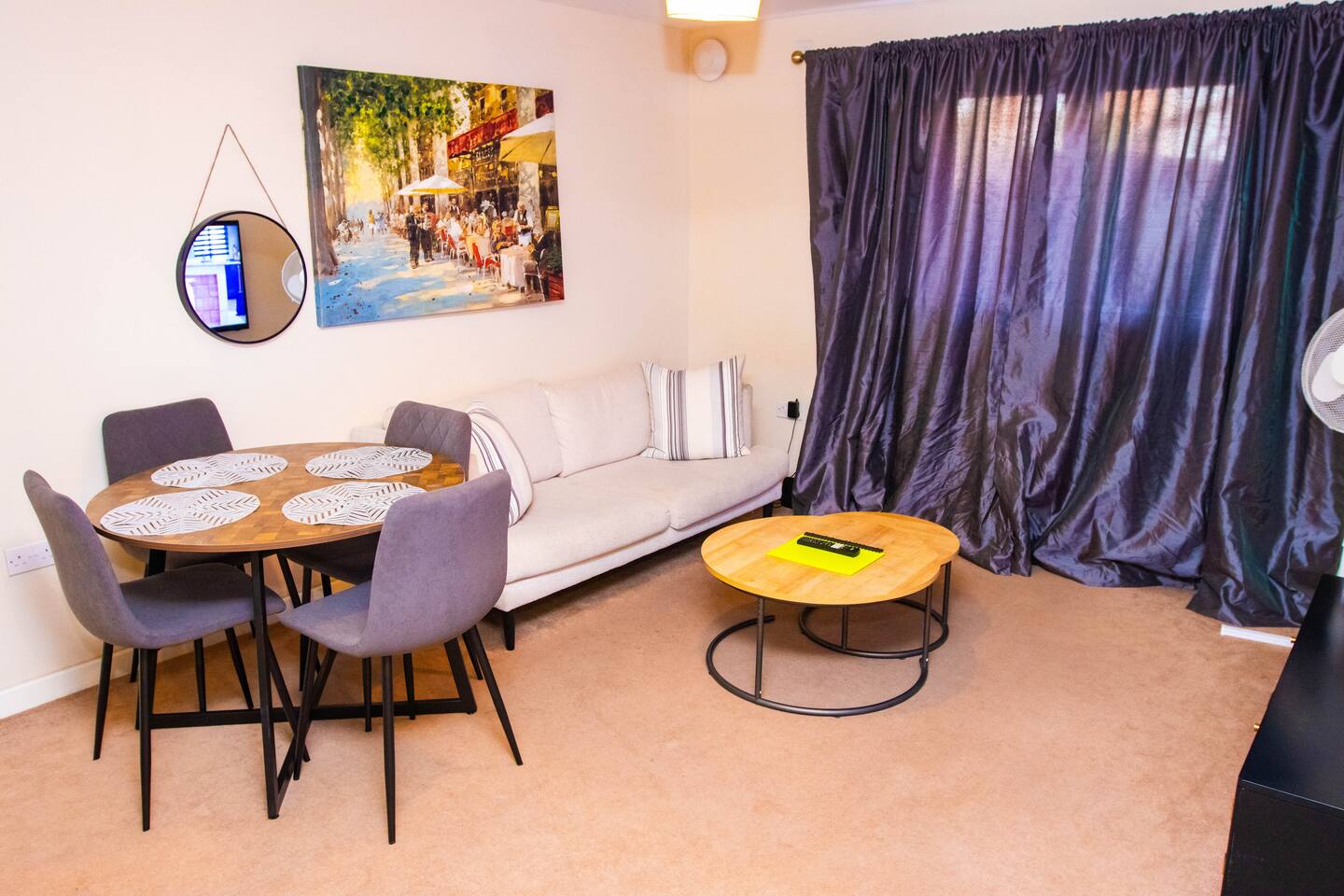 Key Features: - Comfortable 2 double bedrooms plus one bathroom - Fully equipped kitchen (oven, microwave, fridge, washing machine, kettle) perfect for self-catering - Fresh linens, towels, and toiletries included - Cosy lounge with sofa and flat-screen TV - Free super-fast Wi-Fi (ideal for remote work) - Free parking on-site (Designated parking) - Ground floor access (mobility-friendly) - Peaceful, non-smoking property 📍 Central location: walking distance to shops, restaurants, parks, train station Perfect For: NHS staff, contractors and professionals Families visiting local attractions Longer-term stays with self-catering needs Guests seeking a quiet and well-connected base